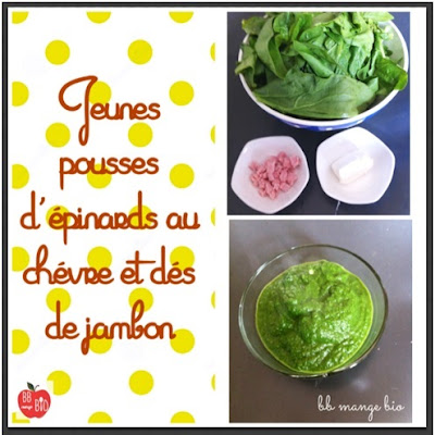 Dans le mixer, mettre les épinards bien égouttés, le fromage de chèvre et le jambon. Mixer finement et c'est prêt pour régaler votre bout de chou.